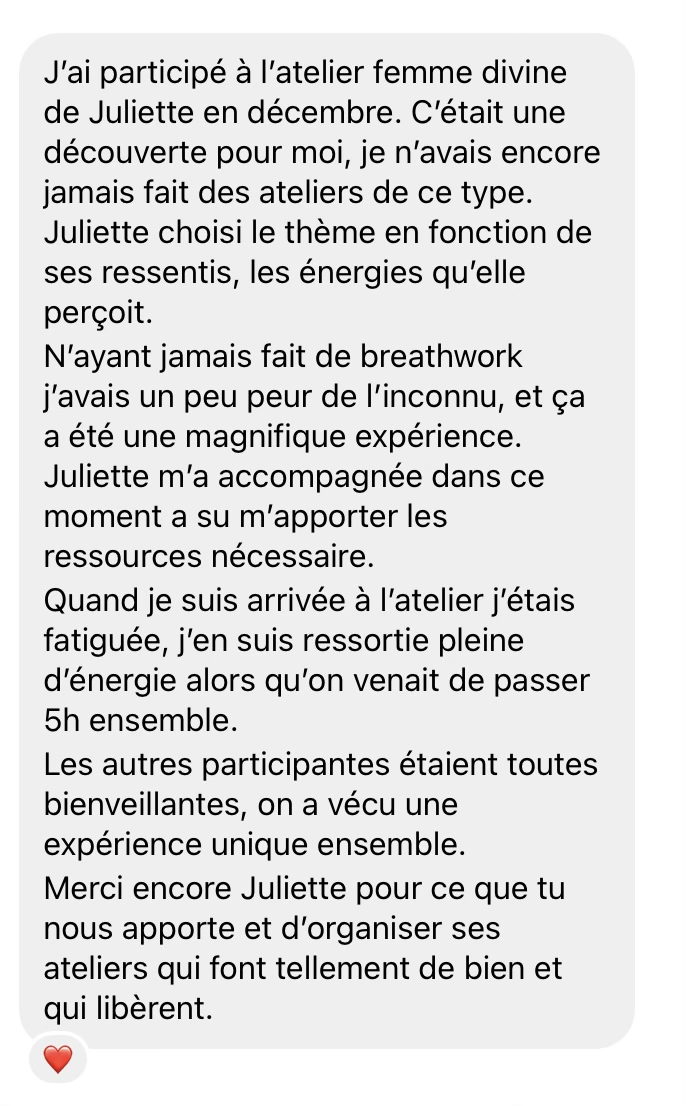 Ensemble, nous plongeons dans les profondeurs du Féminin Sacré pour révéler la Déesse qui sommeille en elles, dans l’amour, la confiance et la beauté infinie de la vie.