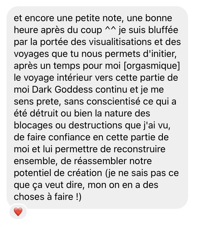 Je leur permet de se retrouver, de s’aimer profondément et d’embrasser chaque part d’elles-mêmes, dans toute leur puissance et leur vulnérabilité.